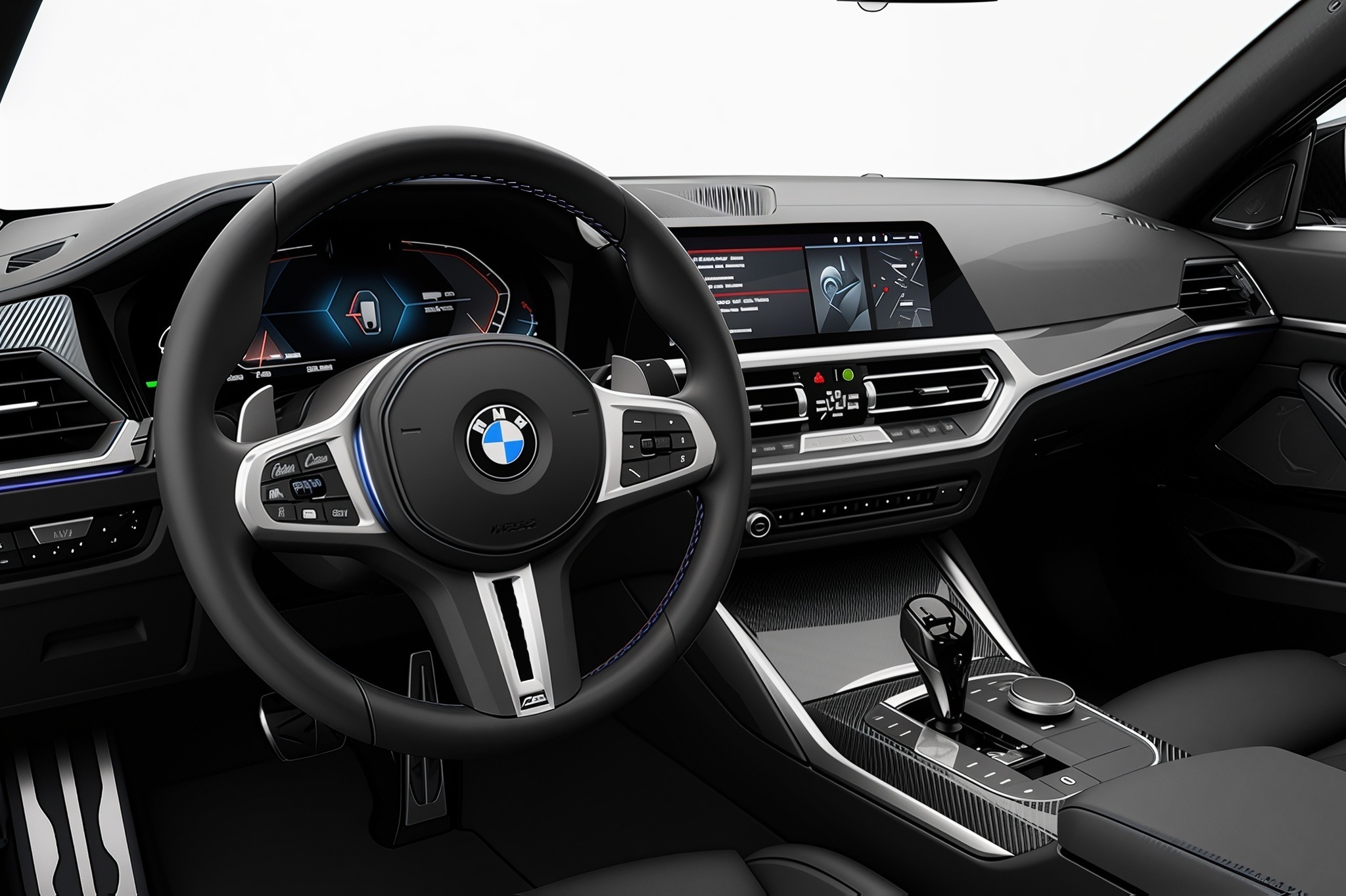 Inside, the 430i M Package features a driver-focused cabin with premium materials and modern technology. The iDrive infotainment system includes a high-resolution display, navigation, and smartphone connectivity, allowing effortless control over entertainment and vehicle settings. M-specific interior touches, sport seats, ambient lighting, and an ergonomic layout create a refined yet sporty atmosphere.