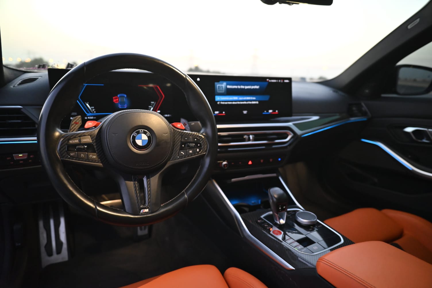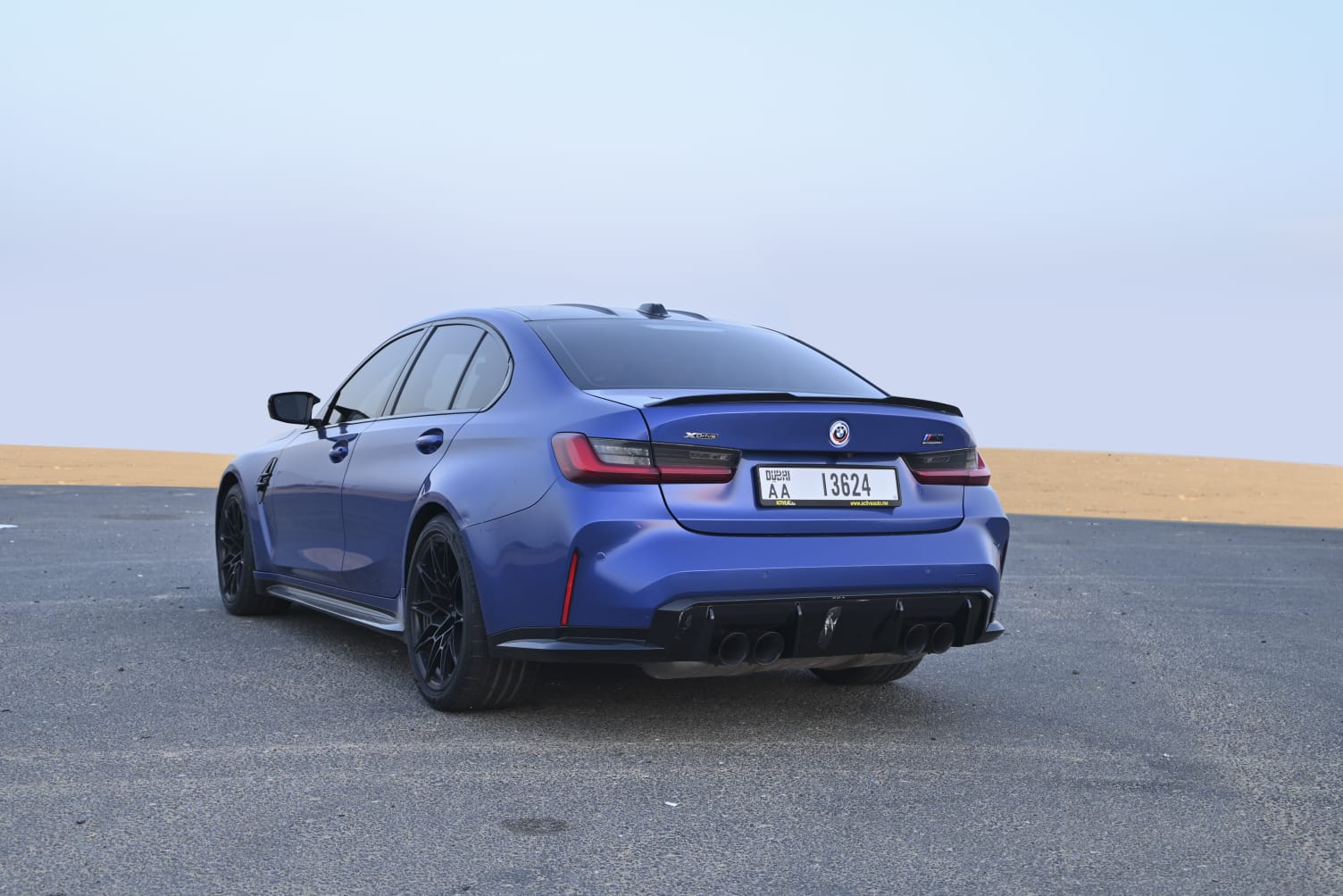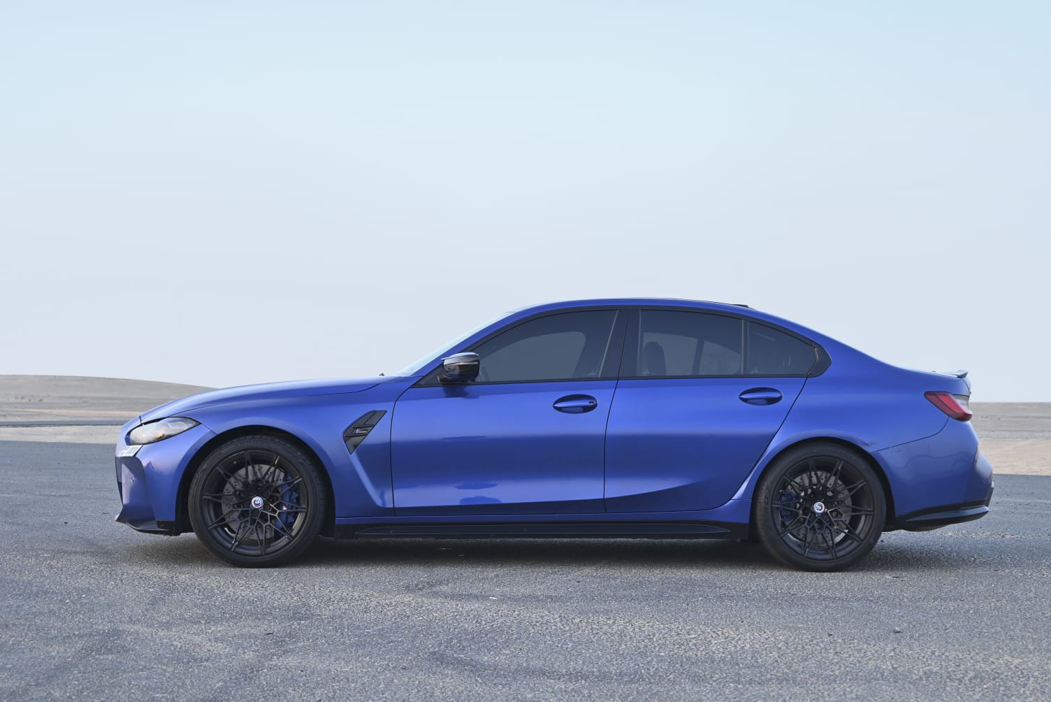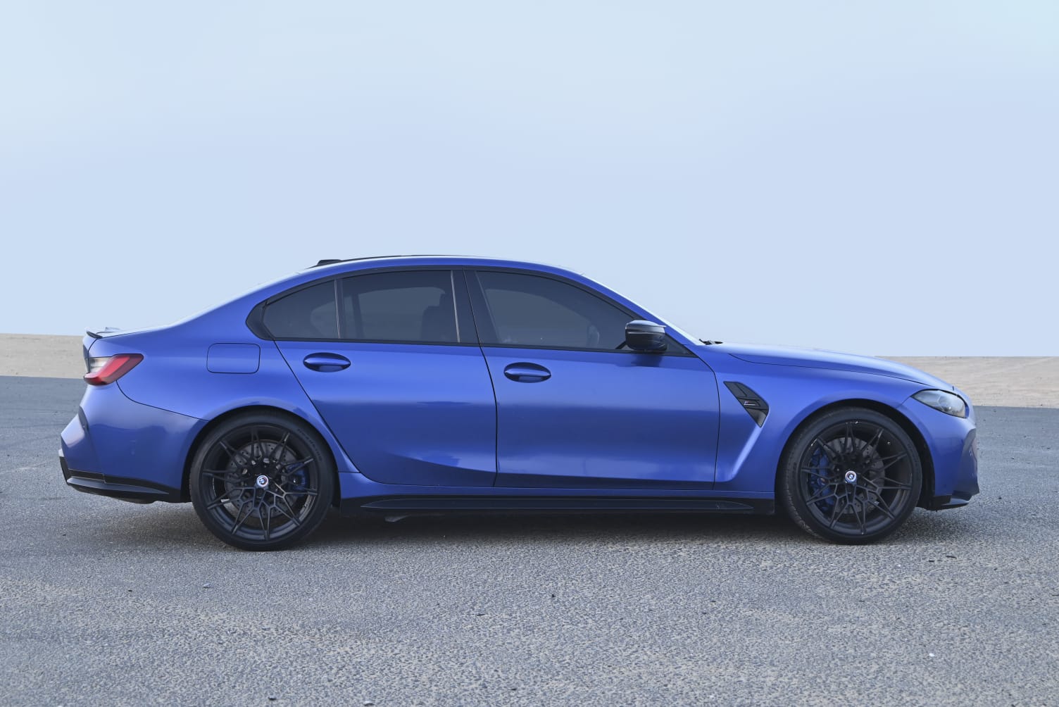 The BMW M3 Competition is a high-performance sports sedan that combines track-ready power with everyday usability. Powered by a 3.0L twin-turbo inline-six engine producing over 510 hp, it delivers exhilarating acceleration, precise handling, and a thrilling driving experience. With its aggressive styling, aerodynamic body, and signature M design elements, the M3 Competition exudes sporty elegance while commanding attention on the road.