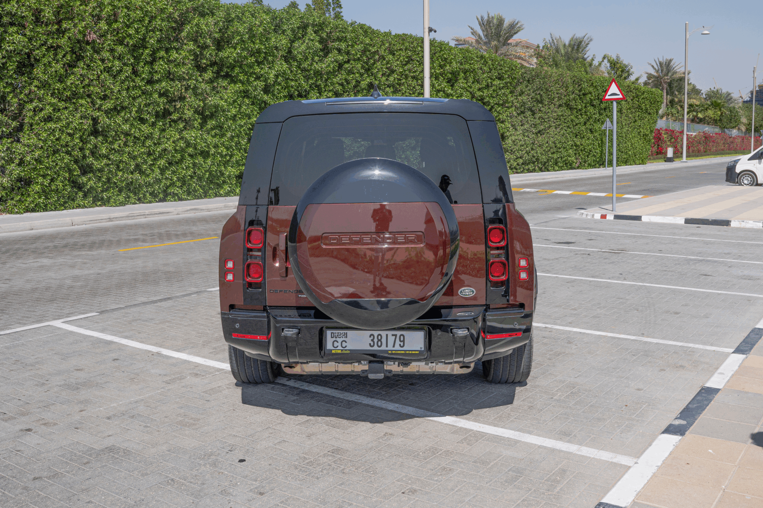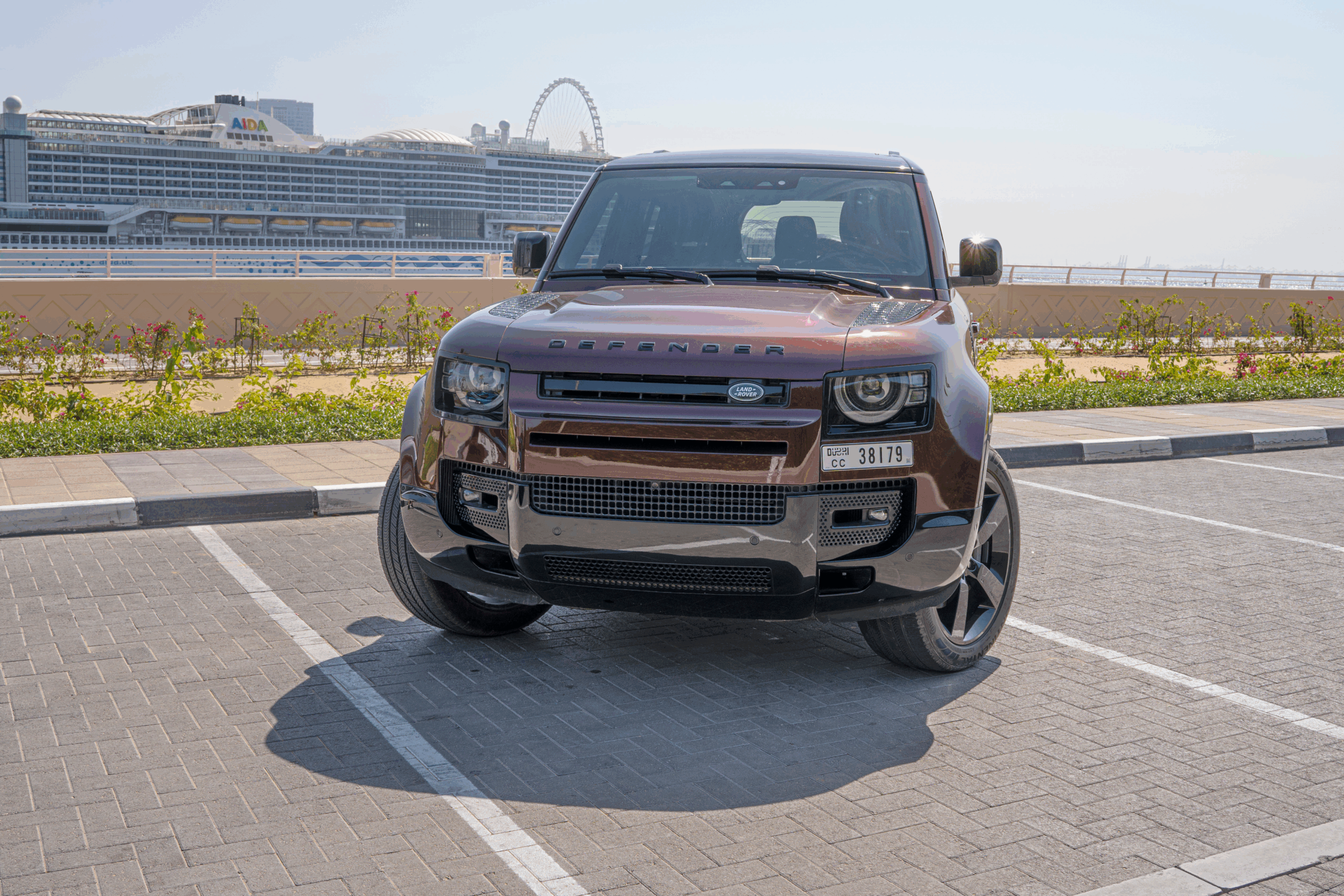 The 2023 Land Rover Defender P130 X Dynamic is a rugged yet refined SUV that blends off-road capability with modern luxury. Its bold and muscular exterior features a high ground clearance, signature front grille, and strong body lines, creating a commanding presence on any terrain. Its design balances practicality with sophistication, suitable for both urban streets and outdoor adventures.