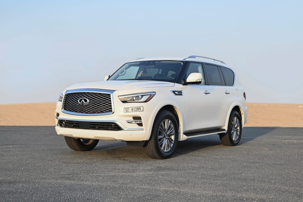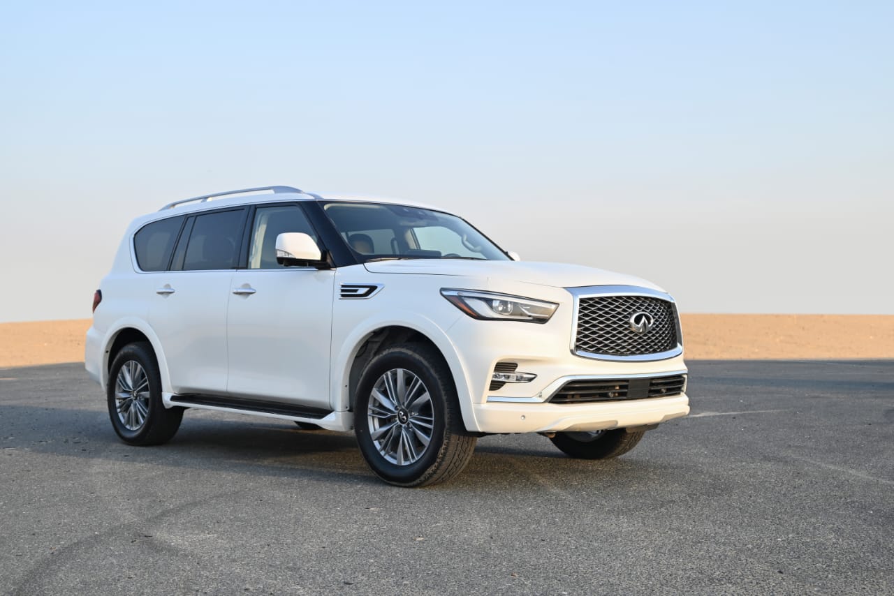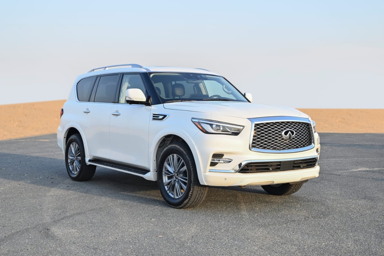 The Infiniti QX80 is a full-size luxury SUV that combines commanding presence, powerful performance, and premium comfort. With seating for up to seven or eight passengers and three spacious rows, it offers ample room for families or executive travel. Under the hood, it features a 3.5-liter twin-turbo V6 engine producing around 450 horsepower paired with a 9-speed automatic transmission, delivering smooth acceleration and confident handling, whether in city traffic or on long journeys. The interior is luxurious and well-appointed, with leather upholstery, wood and metal accents, advanced infotainment, and ambient lighting, creating a refined and comfortable environment. With its blend of space, power, and sophistication, the Infiniti QX80 is ideal for those seeking a premium SUV that excels in both style and performance.