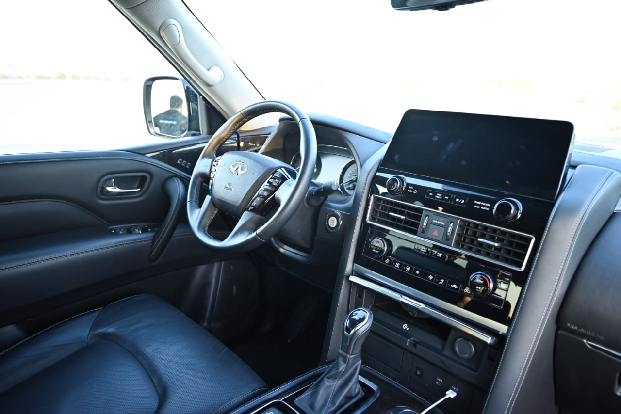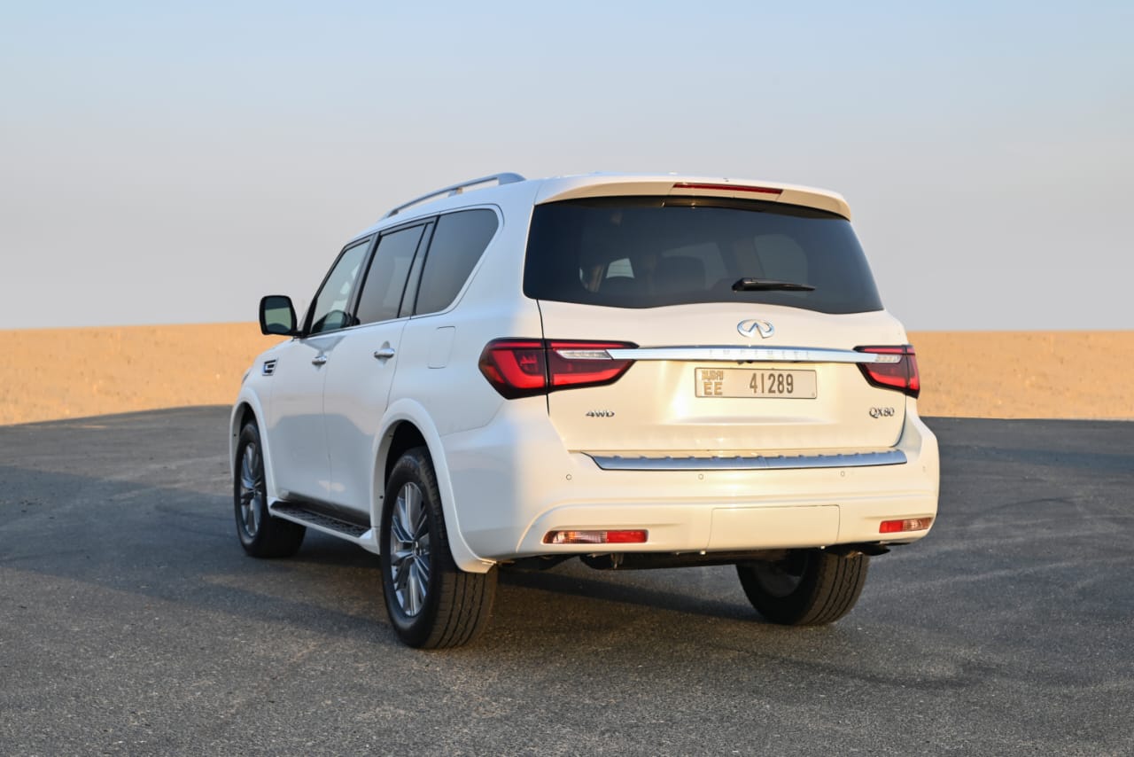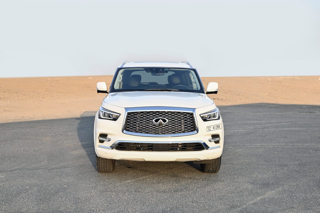 The Infiniti QX80 is a full-size luxury SUV that combines commanding presence, powerful performance, and premium comfort. With seating for up to seven or eight passengers and three spacious rows, it offers ample room for families or executive travel. Under the hood, it features a 3.5-liter twin-turbo V6 engine producing around 450 horsepower paired with a 9-speed automatic transmission, delivering smooth acceleration and confident handling, whether in city traffic or on long journeys. The interior is luxurious and well-appointed, with leather upholstery, wood and metal accents, advanced infotainment, and ambient lighting, creating a refined and comfortable environment. With its blend of space, power, and sophistication, the Infiniti QX80 is ideal for those seeking a premium SUV that excels in both style and performance.