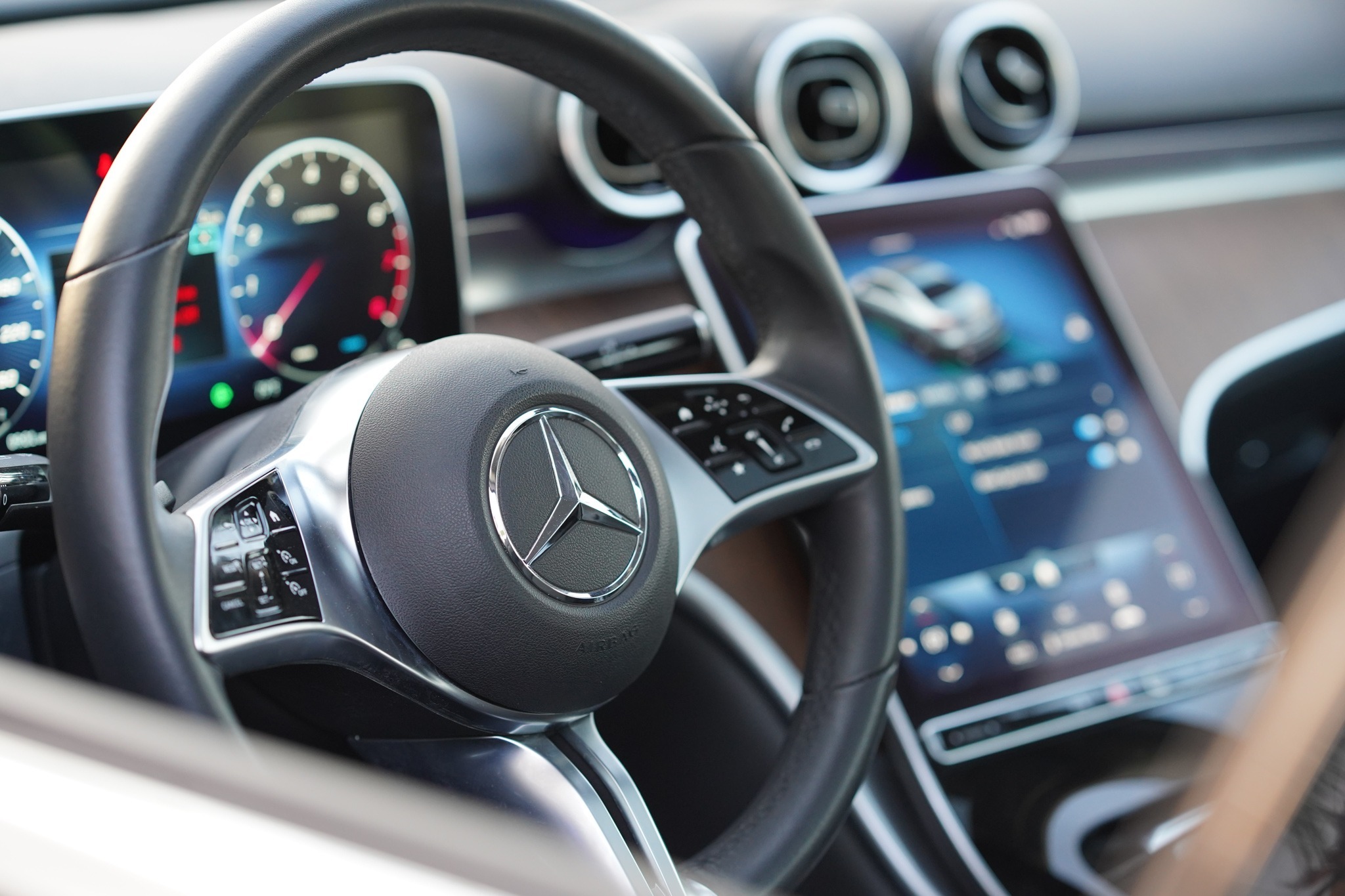 Inside, the C300 4MATIC offers a spacious and premium cabin with seating for five, high-quality materials, and modern technology including Apple CarPlay, Android Auto, and advanced driver assistance systems. Comfort and convenience are prioritized with supportive seats, intuitive controls, and a sophisticated infotainment system. Perfect for executives, families, or luxury rental fleets, the Mercedes C300 4MATIC provides a combination of prestige, performance, and comfort that elevates every journey.