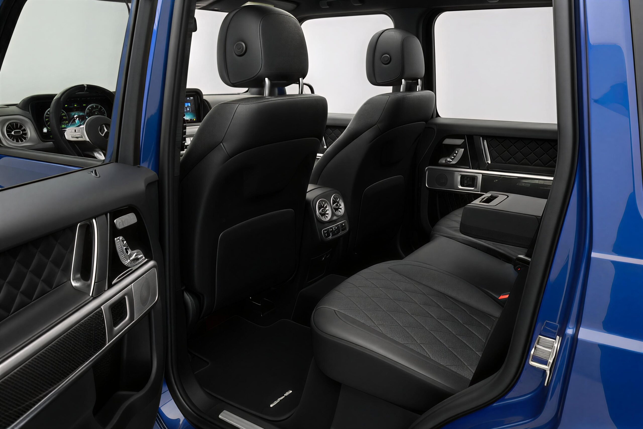 The Mercedes G500 features an iconic exterior with a bold stance, AMG-style detailing, and premium LED lighting. Inside, it offers a spacious, luxurious cabin with Nappa leather seats, premium trim, customizable ambient lighting, and exceptional craftsmanship. The SUV comfortably seats five passengers while providing ample cargo space, making it ideal for both business and leisure travel.